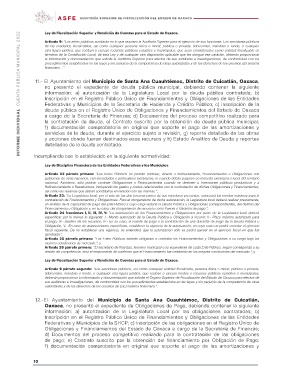 información: a) autorización de la Legislatura Local por las obligaciones contratadas; b)