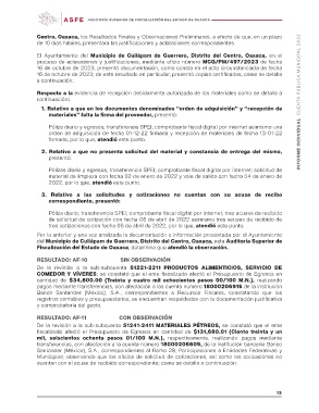 Centro, Oaxaca, los Resultados Finales y Observaciones Preliminares, a efecto de que, en un plazo INFORME INDIVIDUAL CUENTA PÚBLICA MUNICIPAL 2022