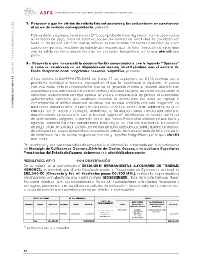 INFORME INDIVIDUAL CUENTA PÚBLICA MUNICIPAL 2022 1.- Respecto a que los oficios de solicitud de cotizaciones y las cotizaciones no cuentan con