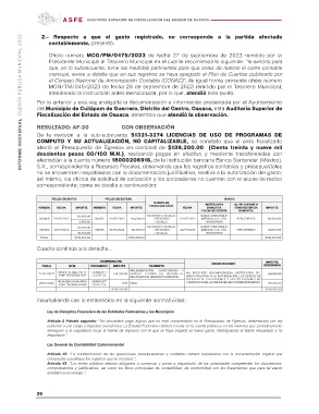 INFORME INDIVIDUAL CUENTA PÚBLICA MUNICIPAL 2022 2.- Respecto a que el gasto registrado, no corresponde a la partida afectada