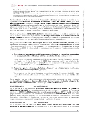 Por lo anterior, la Auditoria Superior de Fiscalización del Estado de Oaxaca, le requirió al H.