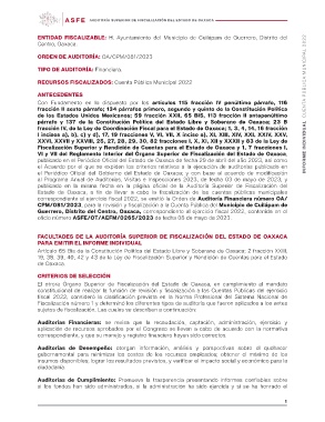 AUDITORÍA SUPERIOR DE FISCALIZACIÓN DEL ESTADO DE OAXACA INFORME INDIVIDUAL CUENTA PÚBLICA MUNICIPAL 2022