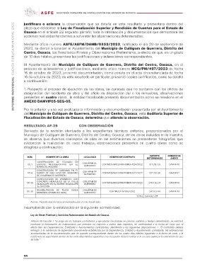 INFORME INDIVIDUAL CUENTA PÚBLICA MUNICIPAL 2022 justificara o aclarara la observación que se detalla en este resultado y presentara dentro del