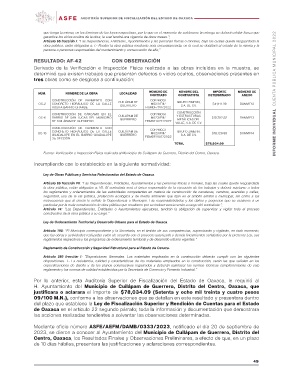 Artículo 74: “Las Dependencias, Entidades o Ayuntamientos ejecutores, tendrán la obligación de supervisar y vigilar todo el proceso