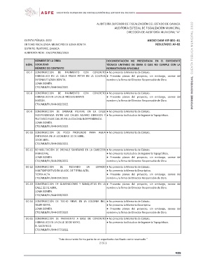 NOMBRE DE LA OBRA DOCUMENTACIÓN NO PRESENTADA EN EL EXPEDIENTE