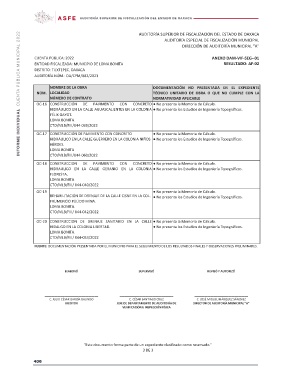 NOMBRE DE LA OBRA DOCUMENTACIÓN NO PRESENTADA EN EL EXPEDIENTE