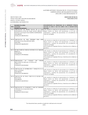 NOMBRE DE LA OBRA DOCUMENTACIÓN NO PRESENTADA EN EL EXPEDIENTE TÉCNICO