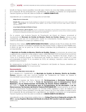 Por lo anterior, esta Auditoria Superior de Fiscalización del Estado de Oaxaca, recomendó al