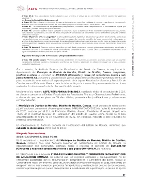 Por lo anterior, la Auditoria Superior de Fiscalización del Estado de Oaxaca, le requirió al H.