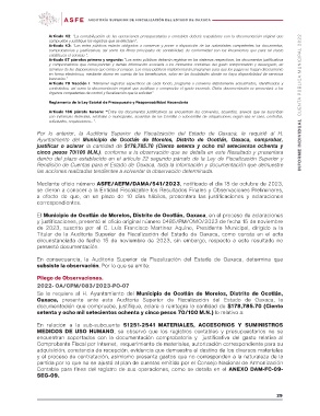 AUDITORÍA SUPERIOR DE FISCALIZACIÓN DEL ESTADO DE OAXACA INFORME INDIVIDUAL CUENTA PÚBLICA MUNICIPAL 2022