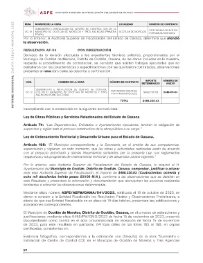 Por lo anterior, esta Auditoría Superior de Fiscalización del Estado de Oaxaca, le requirió al H.