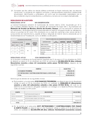 a) De la revisión a la subcuenta 11121 BANCOS/TESORERIA, se observó que el ente fiscalizado