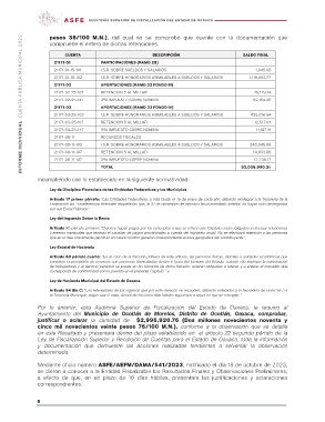 INFORME INDIVIDUAL CUENTA PÚBLICA MUNICIPAL 2022 pesos 38/100 M.N.), del cual no se comprobó que cuente con la documentación que