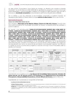 INFORME INDIVIDUAL CUENTA PÚBLICA MUNICIPAL 2022 de radio portátil; Comprobante Fiscal Digital por Internet, no obstante que muestra la leyenda