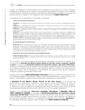 en el artículo 22 segundo párrafo de la Ley de Fiscalización Superior y Rendición de Cuentas para el