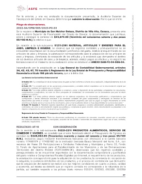 Fiscalización del Estado de Oaxaca, determina que subsiste la observación. Por lo que se emite: