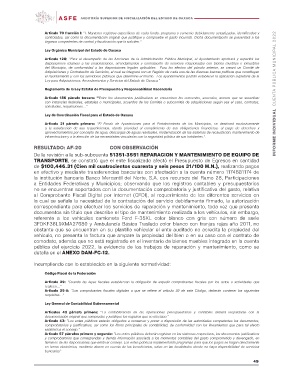 TRANSPORTE, se constató que el ente fiscalizado afectó el Presupuesto de Egresos en cantidad