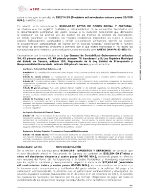 aclare o reintegre la cantidad de $17,714.35 (Diecisiete mil setecientos catorce pesos 35/100 INFORME INDIVIDUAL CUENTA PÚBLICA MUNICIPAL 2022