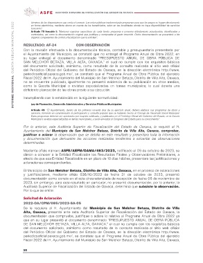 Por lo anterior, esta Auditoría Superior de Fiscalización del Estado de Oaxaca, le requirió al H.