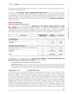 Auditoría Superior de Fiscalización del Estado de Oaxaca, determina que subsiste la observación.
