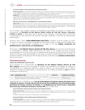 INFORME INDIVIDUAL CUENTA PÚBLICA MUNICIPAL 2022 Ley de Obras Públicas y Servicios Relacionados del Estado de Oaxaca.