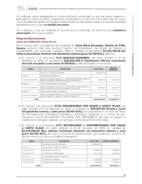 Sin embargo, existe discrepancia en la documentación presentada ya que son gastos pagados y INFORME INDIVIDUAL CUENTA PÚBLICA MUNICIPAL 2022
