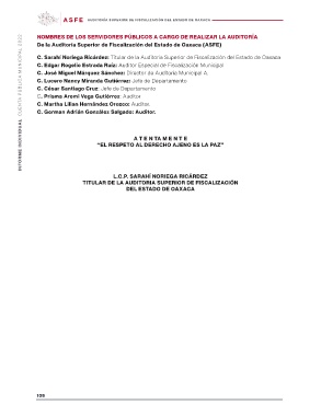 INFORME INDIVIDUAL CUENTA PÚBLICA MUNICIPAL 2022 AUDITORÍA SUPERIOR DE FISCALIZACIÓN DEL ESTADO DE OAXACA