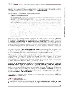 AUDITORÍA SUPERIOR DE FISCALIZACIÓN DEL ESTADO DE OAXACA INFORME INDIVIDUAL CUENTA PÚBLICA MUNICIPAL 2022