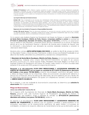 Por lo anterior, esta Auditoria Superior de Fiscalización del Estado de Oaxaca, le requirió al Municipio