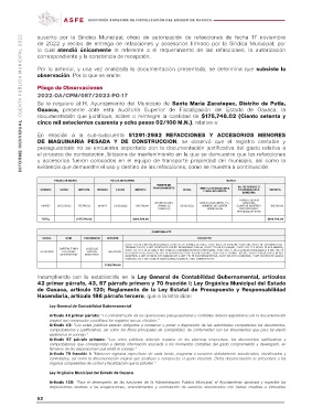 INFORME INDIVIDUAL CUENTA PÚBLICA MUNICIPAL 2022 suscrito por la Síndico Municipal; oficio de autorización de refacciones de fecha 17 noviembre