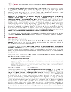 INFORME INDIVIDUAL CUENTA PÚBLICA MUNICIPAL 2022 El Municipio de Santa María Zacatepec, Distrito de Putla, Oaxaca, en el proceso de aclaraciones
