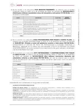 a) De la revisión a la subcuenta 11121 BANCOS/TESORERÍA, se observó que la entidad INFORME INDIVIDUAL CUENTA PÚBLICA MUNICIPAL 2022