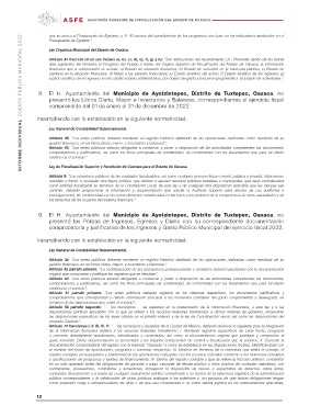 Artículo 43 fracción LII en sus incisos a), b), c), d), e), f), g) y h): “Son atribuciones del Ayuntamiento: LII.- Presentar dentro de los treinta