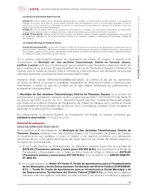 Por lo anterior, esta Auditoria Superior de Fiscalización del Estado de Oaxaca, le requirió al H.