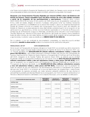 del 2022, integrado en la Cuenta Pública del ejercicio fiscal 2022, se detectó que la entidad