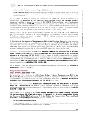 Por lo anterior, la Auditoria Superior de Fiscalización del Estado de Oaxaca, le requirió al H.