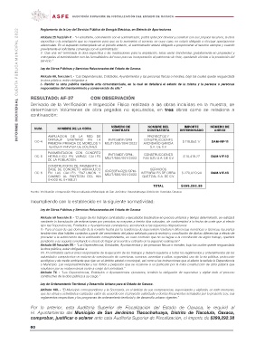 INFORME INDIVIDUAL CUENTA PÚBLICA MUNICIPAL 2022 Reglamento de la Ley del Servicio Público de Energía Eléctrica, en Materia de Aportaciones.