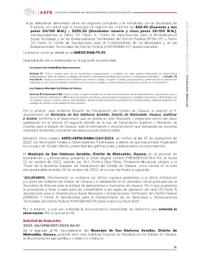AUDITORÍA SUPERIOR DE FISCALIZACIÓN DEL ESTADO DE OAXACA INFORME INDIVIDUAL CUENTA PÚBLICA MUNICIPAL 2022