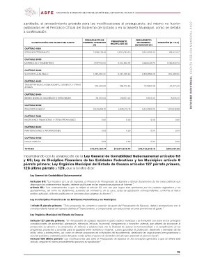 aprobado, el procedimiento previsto para las modificaciones al presupuesto; así mismo no fueron INFORME INDIVIDUAL CUENTA PÚBLICA MUNICIPAL 2022