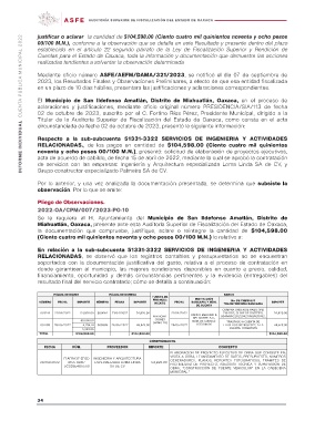 INFORME INDIVIDUAL CUENTA PÚBLICA MUNICIPAL 2022 justificar o aclarar la cantidad de $104,598.00 (Ciento cuatro mil quinientos noventa y ocho pesos
