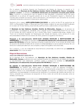 Por lo anterior, la Auditoria Superior de Fiscalización del Estado de Oaxaca, le requirió al H. INFORME INDIVIDUAL CUENTA PÚBLICA MUNICIPAL 2022