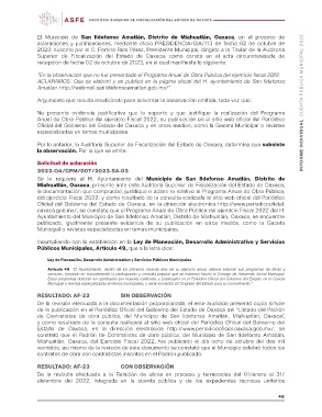 “En la observación que no fue presentado el Programa Anual de Obra Pública del ejercicio fiscal 2022.