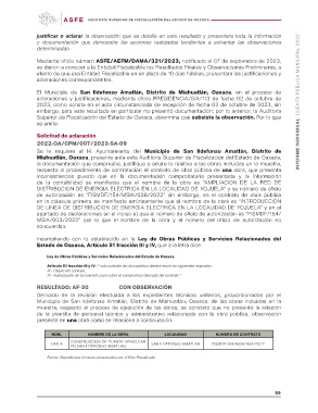 justificar o aclarar la observación que se detalla en este resultado y presentara toda la información INFORME INDIVIDUAL CUENTA PÚBLICA MUNICIPAL 2022