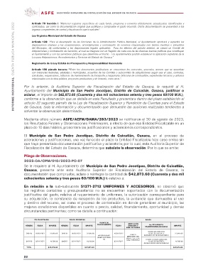 artículo 22 segundo párrafo de la Ley de Fiscalización Superior y Rendición de Cuentas para el Estado