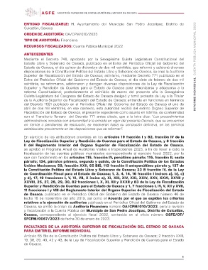AUDITORÍA SUPERIOR DE FISCALIZACIÓN DEL ESTADO DE OAXACA INFORME INDIVIDUAL CUENTA PÚBLICA MUNICIPAL 2022