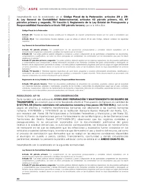 TRANSPORTE, se constató que el ente fiscalizado afectó el Presupuesto de Egresos en cantidad de