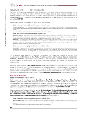 INFORME INDIVIDUAL CUENTA PÚBLICA MUNICIPAL 2022 RESULTADO: AF-24 CON OBSERVACIÓN