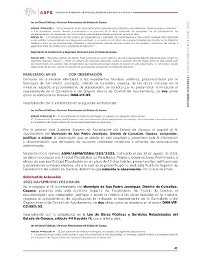 Ley de Obras Públicas y Servicios Relacionados del Estado de Oaxaca. INFORME INDIVIDUAL CUENTA PÚBLICA MUNICIPAL 2022