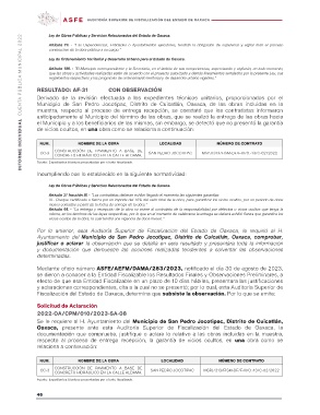 INFORME INDIVIDUAL CUENTA PÚBLICA MUNICIPAL 2022 Ley de Obras Públicas y Servicios Relacionados del Estado de Oaxaca.