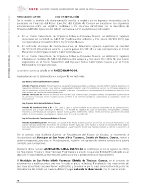 Fiscalización del Estado de Oaxaca, determina que subsiste la observación. Por lo que se emite: